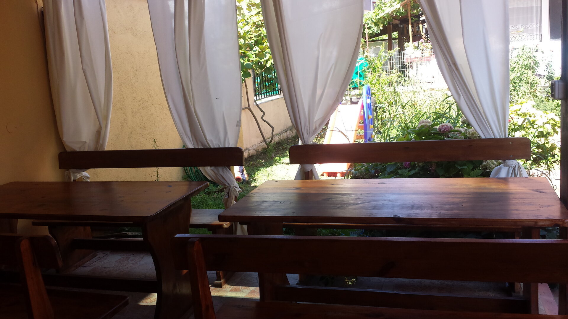 На разположение на нашите гости са прекрасен двор, подходящ за игра на вашите деца и градина с кът за отдих и оборудвана лятна кухня за приготвяне на храна по желание.